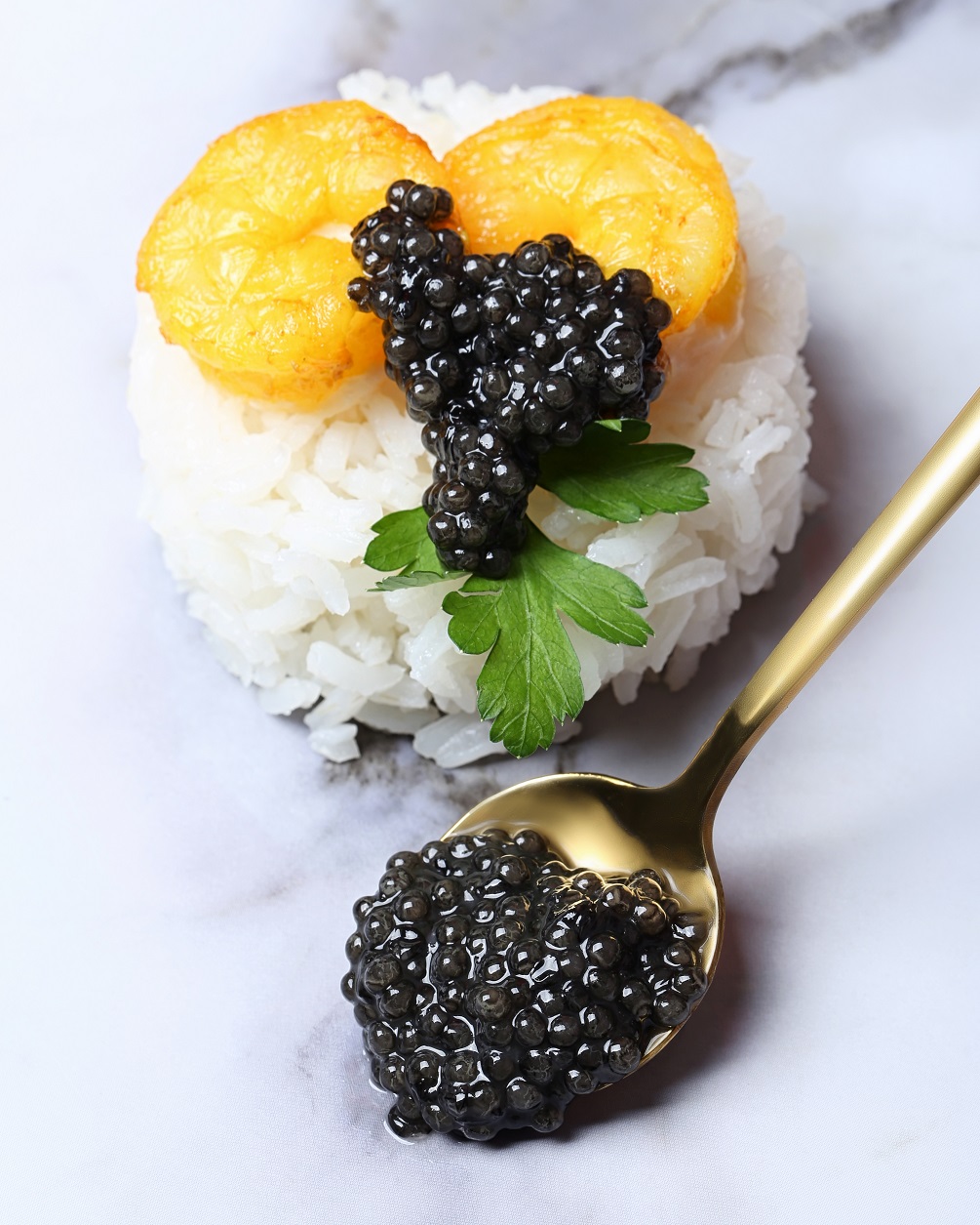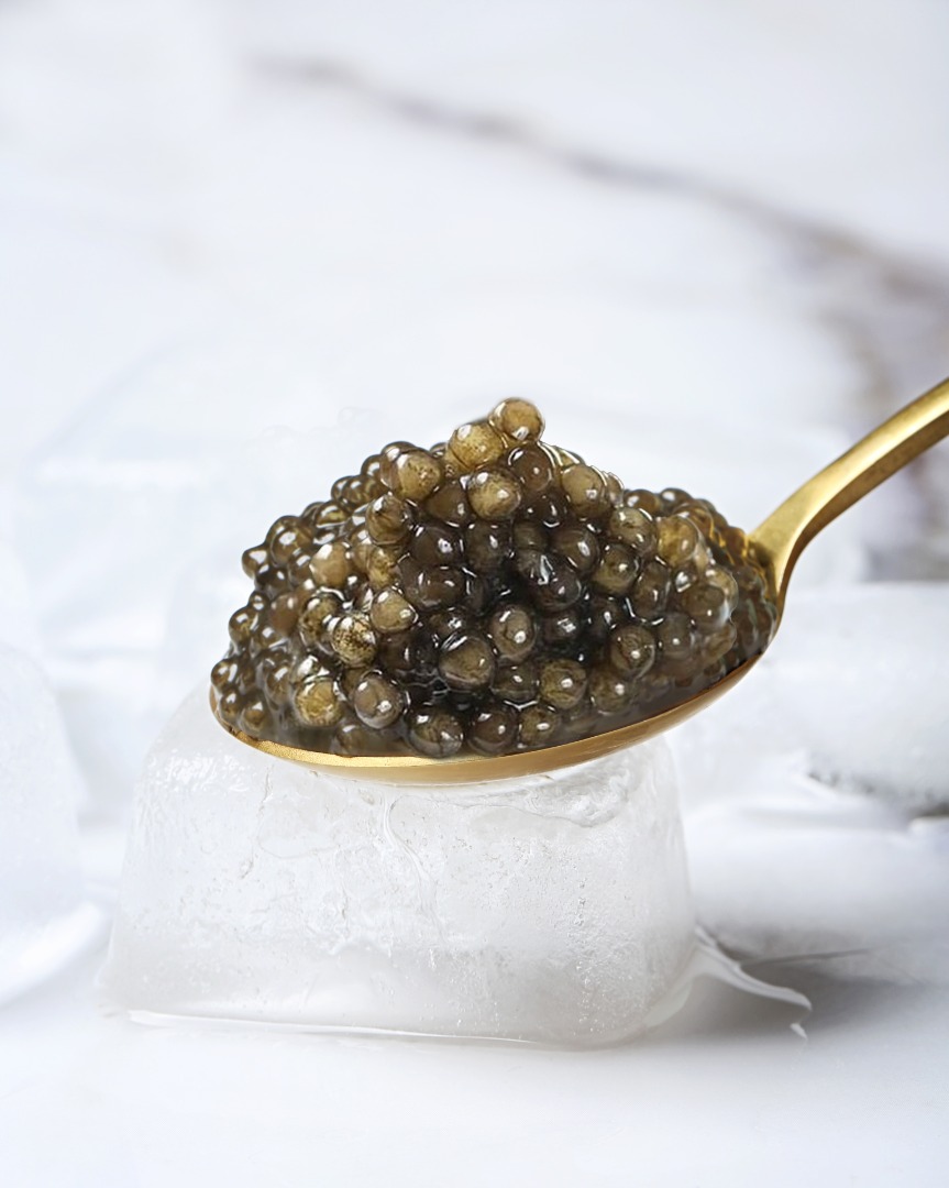 Caviar Baeri is originally from the Siberian sturgeon fish. This caviar has an exceptionally fresh and iodized flavor. It has small grains, with dark black to brown color.